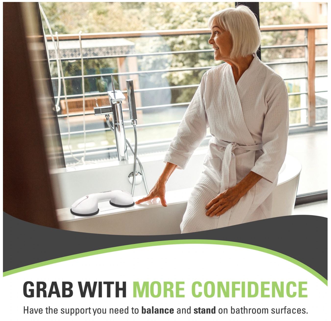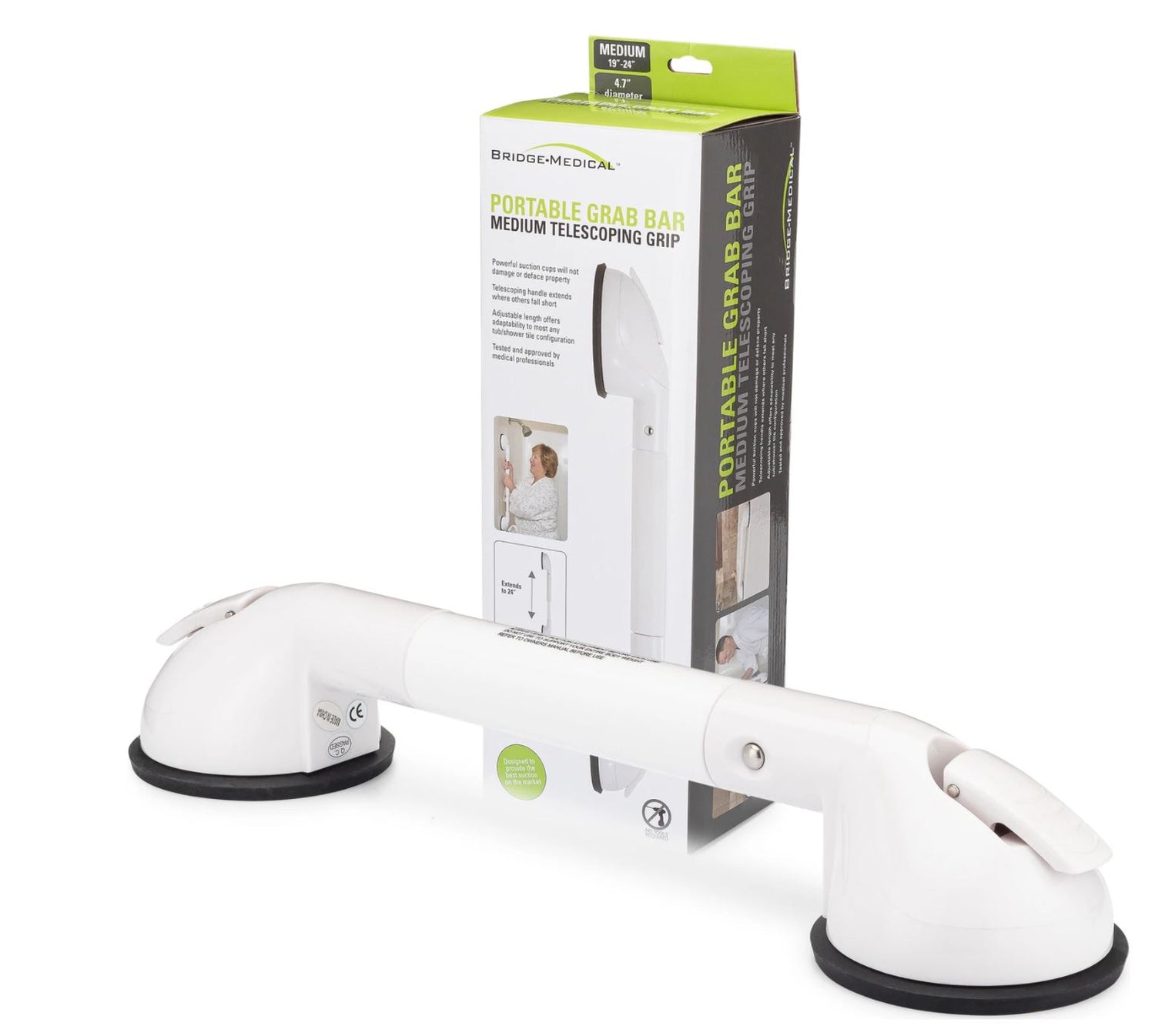 Offering an adjustable length ranging from 19"- 29", the telescoping grip allows adaptability to almost any tub/shower tile configuration. The telescoping handle allows for a much longer hand-holding area.
