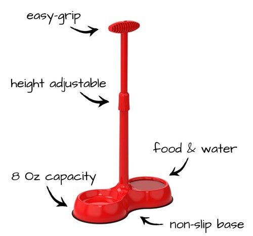 Feed your pet easily with the No Bend Pet Bowl. Use the handle to put the bowl down and lift the bowl up from the floor, with minimal bending required. The handle is height adjustable, allowing you to choose the perfect height for you and its large easy-grip makes it simple to move from worktop to floor.