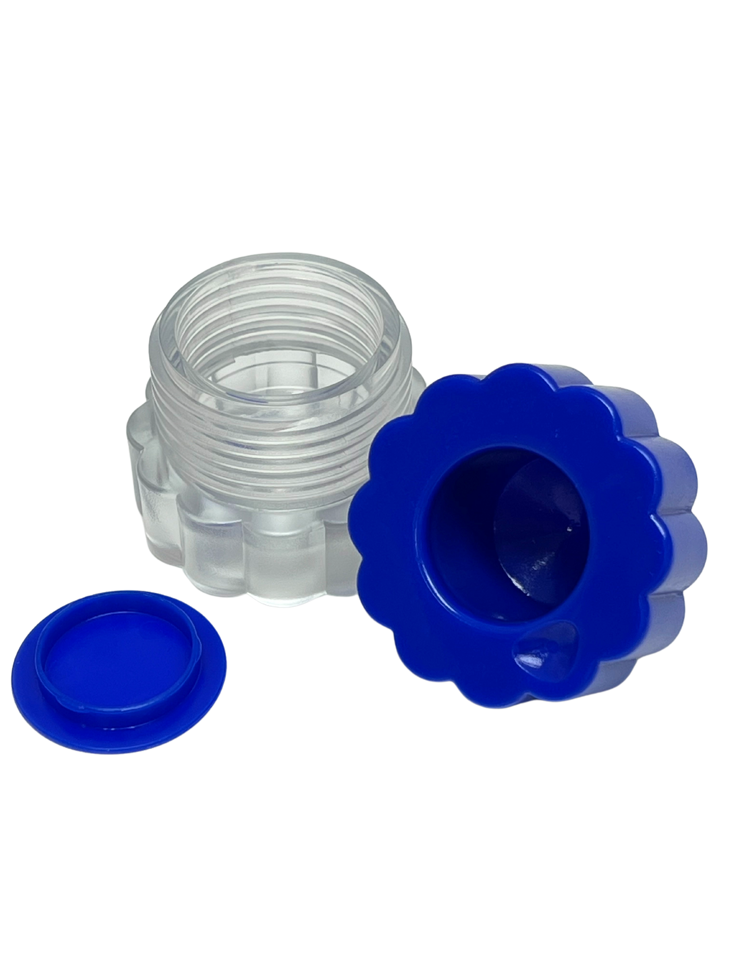 • Blue lid and transparent bottom to see the contents easily