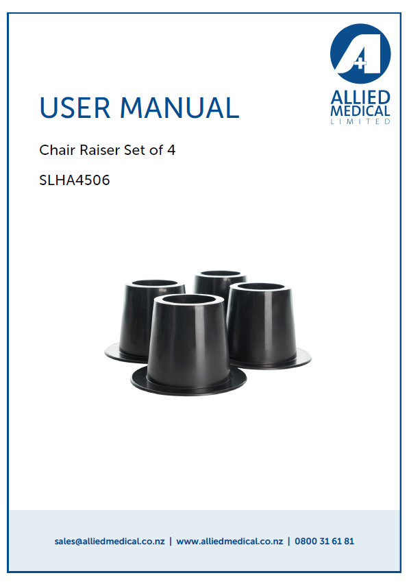 Moulded cone plastic chair raisers to make it easier for users to sit down and get up. These raise the chair by 80 mm and are steady when they are in use.