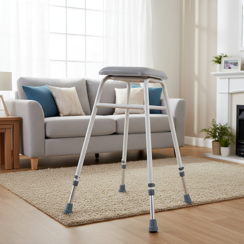 High quality, robust perching stool with angled seat. Designed to allow the user to rest and then stand again with ease, which works well for those who tire easily or are recovering from surgery or an injury. This stool is perfect for kitchen and bathroom use.